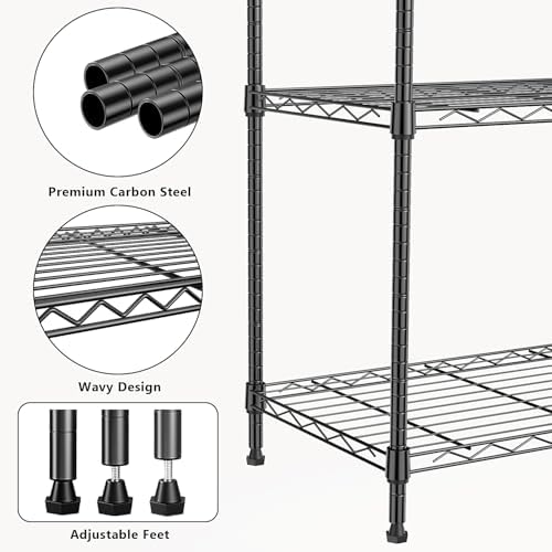 1250 lbs 5 Tier Shelf Metal Storage Shelves Wire Rack Closet Organizers with Wheel for Garage Kitchen Bathroom Laundry Black 13.7″ D x 23.6″ W x 62.4″ H