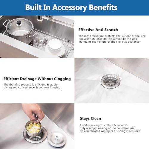 [Complete and Quick Drainage] Visible X-shaped water guideline on the slightly sloped sink bottom leads to fast and complete drainage, no blockage. Easy to clean and long-lasting, making your clean-up like a breeze.