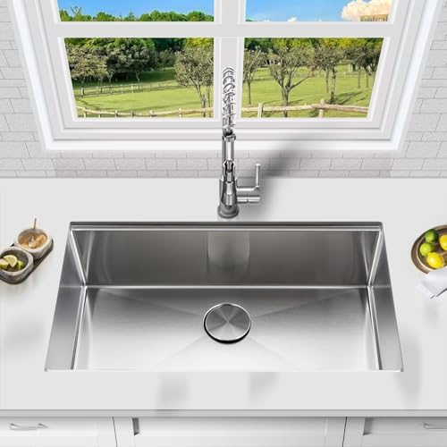 33 Inch Undermount Kitchen Sink Workstation, Stainless Steel Kitchen Sinks Single Bowl, Handmade Large Undermount Sink 33x19x10 with Accessories