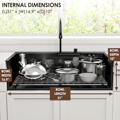 ??Waterfall Kitchen Sink?Our 33×22 waterfall kitchen sink is made of the highest specification 16 gauge stainless steel for excellent corrosion and rust resistance. The beautiful finish and delicate touch is created through PVD coating technology. Minimum countertop size is 36 inch.