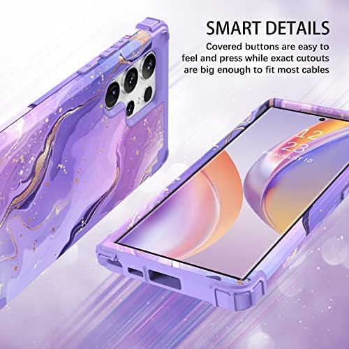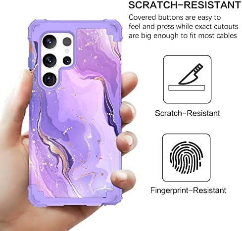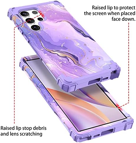 BENTOBEN for Samsung Galaxy S23 Ultra Case, Marble Pattern Samsung S23 Ultra Case 3 in 1 Full Body Protective Soft Silicone + Hard PC Rugged Heavy Duty Cover for Girls Women, Purple Marble