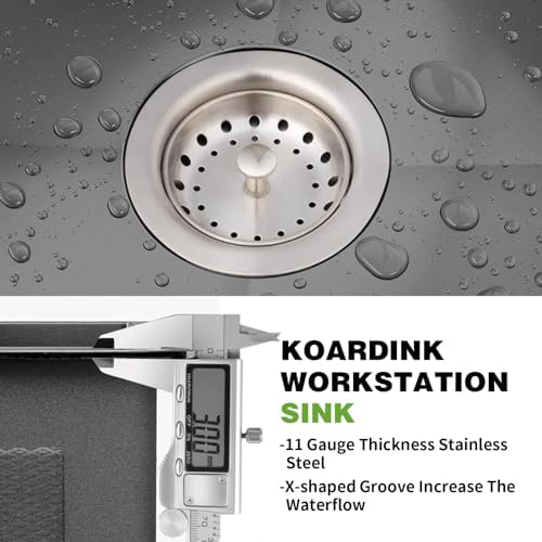 With the X-groove design and standard drain assembly, top mount kitchen sink have the efficient water flow prevents debris, food particles, and other materials from getting trapped in the sink.
