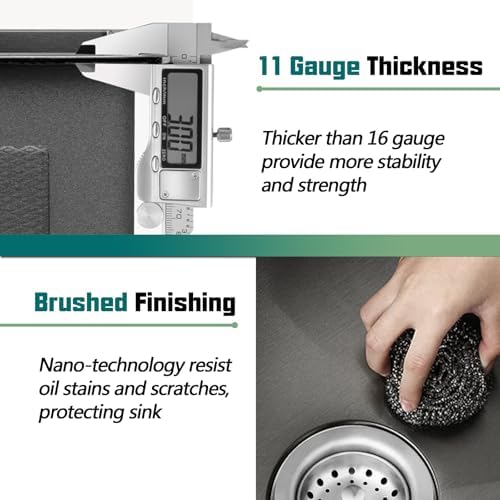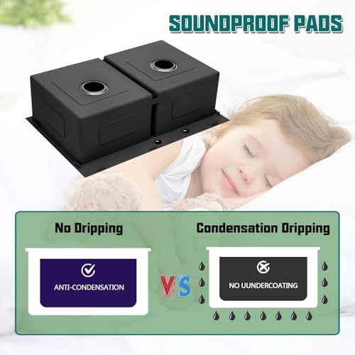 Surface Technology: Nano-coating of 33 inch double bowl kitchen sink reduces stain accumulation, ensuring easy maintenance. Soundproof pad minimize noise, providing a quieter experience and condensation proof layer prevents moisture accumulation
