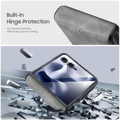 BSNRM for Motorola Razr Ultra 2025 Case Built-in Screen Protector & Hinge Protection & Ultra Thin PU Leather Matte PC Shockproof Phone Cover Smartphone Case for Moto Razr Ultra 2025 (Gray)