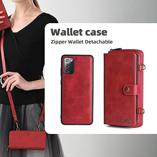 Compatible with Samsung Galaxy Note 20 Glaxay Note20 5G Wallet Case Crossbody Shoulder Strap Stand Multi-Function 2in 1 Detachable Magnetic Phone Cover for Gaxaly Notes 20s Twenty Not S20 Women Red