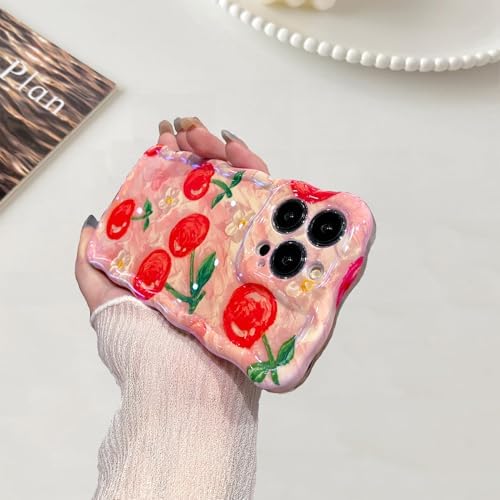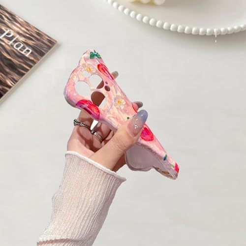Sweet Strawberry Design:ONLY for iPhone 15(6.1″)colorful retro oil painting print floral flower phone case,Featuring a vibrant 3D oil painting print,but Not 3D,NO 3D touch.The girly summer aesthetic adds a playful,artistic touch, perfect for brightening your day