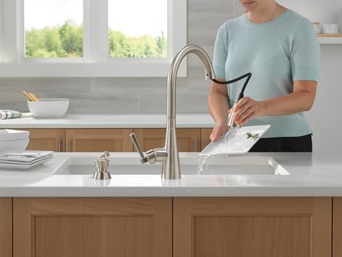 The Boyd™ Kitchen Faucet features simple, elegant details to match any kitchen space. MagnaTite® Docking uses a powerful integrated magnet to set your pull down sprayer precisely into place and hold it there so it stays docked when not in use. ShieldSpray® Technology cleans with laser-like precision while containing mess and splatter. A concentrated jet powers away stubborn messes while an innovative shield of water contains splatter and clears off the mess, so you can spend less time soaking, scrubbing and shirt swapping. SpotShield® finish helps to keep your kitchen faucet cleaner, longer by resisting water spots and fingerprints. Delta® kitchen faucets with Diamond Seal® Technology perform like new for life with a patented design which reduces leak points, is less hassle to install and lasts twice as long as the industry standard. You can install with confidence, knowing that Delta kitchen faucets are backed by our Lifetime Limited Warranty.