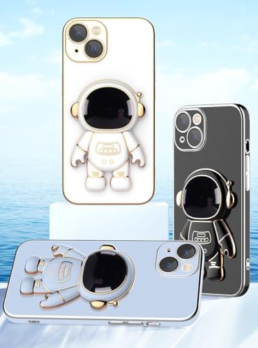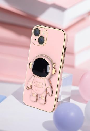 fmuxqje 6D Plating Astronaut Hidden Stand Case Compatible with Phone 15/16 Pro Max, Stereo Astronaut Case Cover Pink for 15 Pro Max