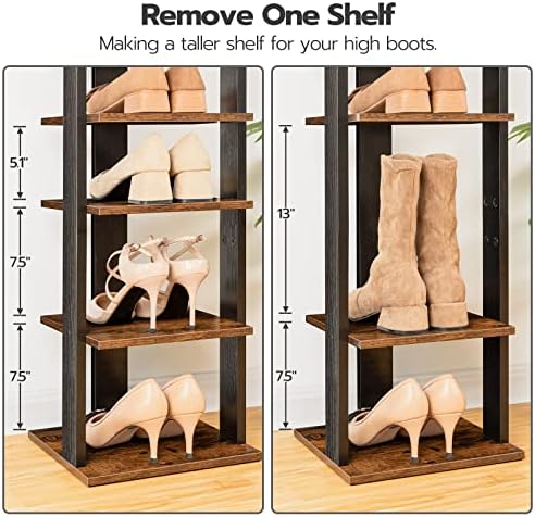 Versatile Shoe Rack with Hooks: This vertical shoe rack does more than hold shoes. With handy side hooks, it doubles as a storage solution for umbrellas, wallets, and more. Discover the convenience of a multi-functional rack that meets all your storage needs