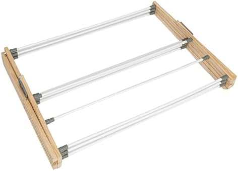 A smart way to save electricity and the environment, this clothes drying rack offers a sturdy hanging space for your patio, laundry room, sewing room or bedroom. With its ample amount of 23.8 feet of hanging space, this rack can be used for a variety of purposes around the house, without taking up space. This clothes drying rack grants superior support with its wood X-frame. The slanted legs keep the rack stable by distributing weight evenly over a larger surface area. Lightweight and easy to carry, this clothes rack can be easily relocated around the house as need be. When not in use, this rack can also be folded down for compact storage. The smooth, vinyl wrapped rods offer 11 spaces to hang T-shirts, slacks, dresses, jackets, blankets and more. The top set of rods is closely-spaced to provide a service for drying sweaters, blouses and other delicate materials flat. While this clothes drying rack is perfect for simplifying your laundry day routine, it can also be used for other purposes. Use this rack to organize fabric for sewing projects, strategize quilt patterns and other creative projects. This rack could also come in handy as a spot to hang swimsuits over the summer and wet snow pants in the winter. Ready to assemble, this rack will be all set to use within minutes..