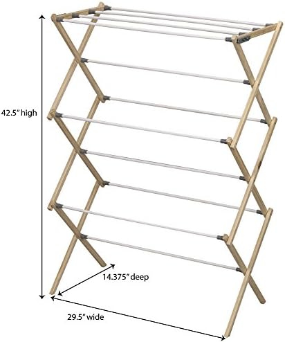 Features a wood X-frame drying rack made with slanted feet for greater stability and flat top for drying sweaters and other items.