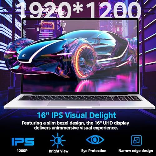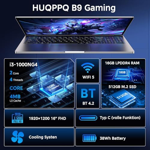 HUQPPQ 16 Inch Gaming Laptop Core i3 (Up to 3.2GHz) 16GB RAM 512GB SSD Expandable to 1TB Win11 Laptops | FHD 1920×1200 Display | Type-C | Long-Lasting Battery | Includes Mouse & Keyboard Film-Silver