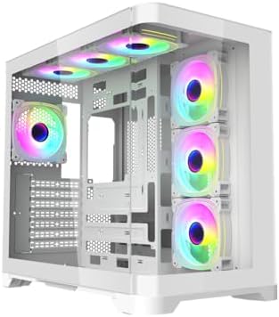 iONZ PC Gaming Case ATX Mid Tower – Dual Chamber Dynamic Series with 4 ARGB PWM Fans | Curved Tempered Glass | Flow – White