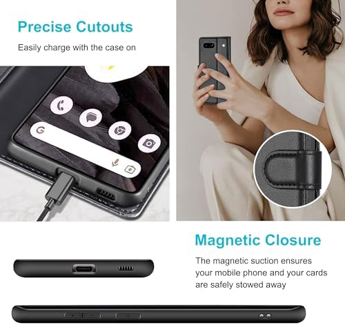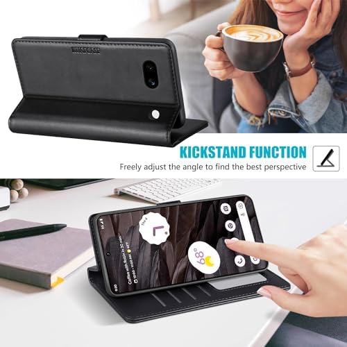 Kuafcase for Google Pixel 7a Case with 1 Screen Protector, 4 Card Slots Magnetic Closure Kickstand Shockproof Phone Case for Google Pixel 7a – Black