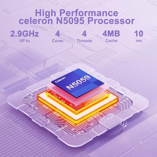 From the brand HUQPPQ Laptop HUQPPQ Laptop HUQPPQ Laptop ?High Performance Processor?This purple laptop is equipped with Celeron N5095 processor, 4 cores and 4 threads, and the main frequency is up to 2.9GHz. 4MB L3 cache is an indispensable part of it. When reading data frequently, it can respond quickly,