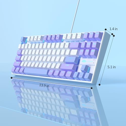 MageGee 75% Mechanical Gaming Keyboard with Red Switch, LED Blue Backlit, 87 Keys TKL Wired for Windows Laptop PC Gamer – White/Purple