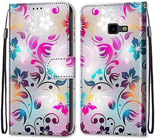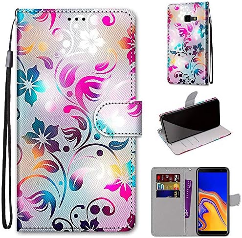 Mo-Somnus Compatible with Samsung Galaxy J4 Plus 2018 / J4 Prime Case, PU Leather Flip Wallet Phone Cases Cover with Viewing Stand & 3 Card Holder, TPU Shockproof Magnetic Folio Cover (Flower 1)