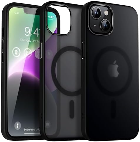 • Flyzoo Magnetic Matte Case for iPhone 13/14, Compatible with MagSafe, Military Grade Drop Protection, Slim Thin Translucent Frosted Silicone Shockproof Phone Cover, 6.1″, Black
