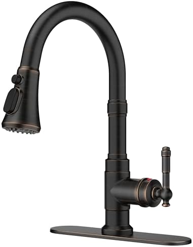 • FORIOUS Vintage Kitchen Faucets with Pull Down Sprayer, Oil Rubbed Brown, High Arc Single Handle Stainless Steel Antique Pull Out Sink Faucet for Farmhouse Camper Rv Bar, Fit for 1 or 3 Hole