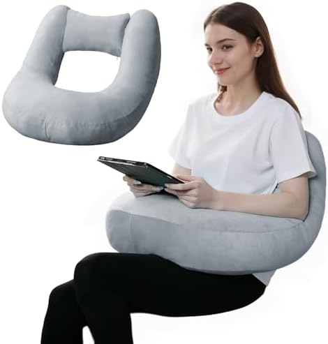 • Pyurifai Crochet Pillow for Lap Support – Reading Pillow for Laptop with Extra Back Pillow for Support, Enlarged Gaming Pillow for Lap, Multi-Purpose Reading Pillow for Gaming/Working/Crocheting, Grey