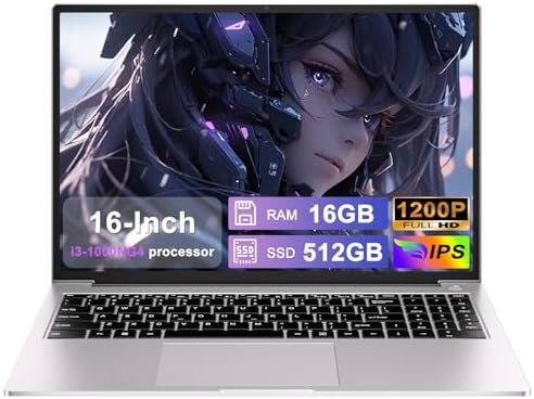 • HUQPPQ 16 Inch Gaming Laptop Core i3 (Up to 3.2GHz) 16GB RAM 512GB SSD Expandable to 1TB Win11 Laptops | FHD 1920×1200 Display | Type-C | Long-Lasting Battery | Includes Mouse & Keyboard Film-Silver