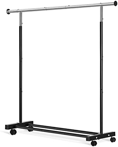 • Clothing Rack, 55.51 Inch Heavy Duty Clothes Rack Rolling Garment Rack with Wheels and Bottom Shelf, 130LB Capacity Clothes Racks for Hanging Clothes, Coats, Shirts, Sweaters, Skirts, Black