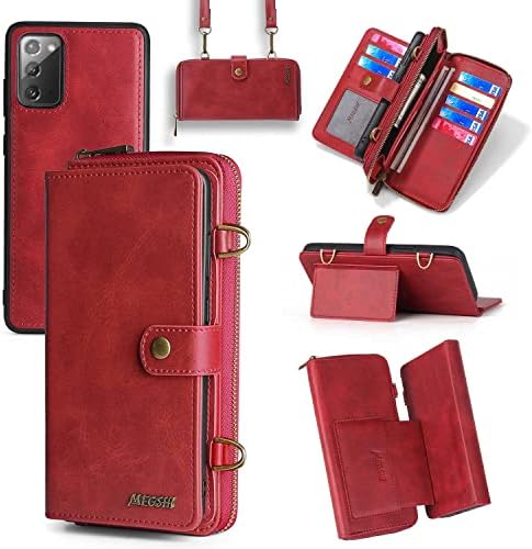 • Compatible with Samsung Galaxy Note 20 Glaxay Note20 5G Wallet Case Crossbody Shoulder Strap Stand Multi-Function 2in 1 Detachable Magnetic Phone Cover for Gaxaly Notes 20s Twenty Not S20 Women Red