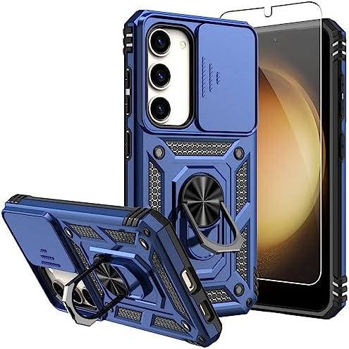 • Samsung Galaxy S23 Case with Screen Protectors and Camera Cover, Military Grade 16ft Drop Tested Cover with Magnetic Kickstand, Blue