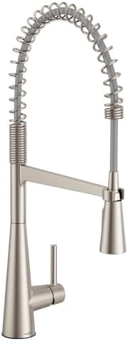• Moen Sleek Spot Resist Stainless One Handle High-Arc Pulldown Kitchen Faucet, Modern Spring Kitchen Sink Faucet with Power Boost Pull Down Sprayer Head for Faster Clean, 5925SRS