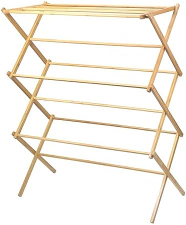 Price: (as of – Details) wooden clothes drying rack Indoor or outdoor clothes drying rack. Nine bars for drying, folds down for easy storage. Unit measures 14. 5-Inch by 29. [More]
