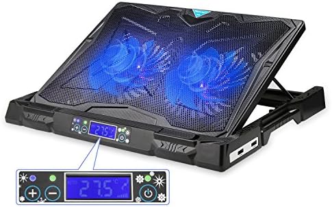• TECKNET Laptop Cooling Pad for 12″-17.3″-USB Powered Cooling Stand with Dual Quiet Fans,Adjustable Height,LED Temperature&Fan Speed Display,Fits Gaming Laptops (Black)