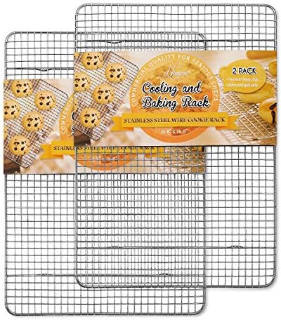 • Hiware 2-Pack Cooling Racks for Baking, Stainless Steel Wire Rack Baking Rack Oven Rack Cookie Rack, Oven Safe, Rust-Resistant Rack for Cooking, Baking, Roasting and Grilling – Fit Half Sheet Pan