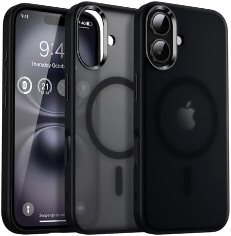 • Flyzoo Magnetic Matte Case for iPhone 16, Compatible with MagSafe, Military Grade Drop Protection, Slim Thin Translucent Frosted Silicone Shockproof Phone Cover, 6.1″, Black