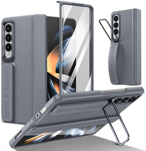 • Smartphone Flip Cases Wristband Compatible with Samsung Galaxy Z Fold 3 Case with Screen Protector, Hidden Kickstand & Silicone Wrist Strap, Rugged Shockproof Hinge Protection Flip Cover(Grey)