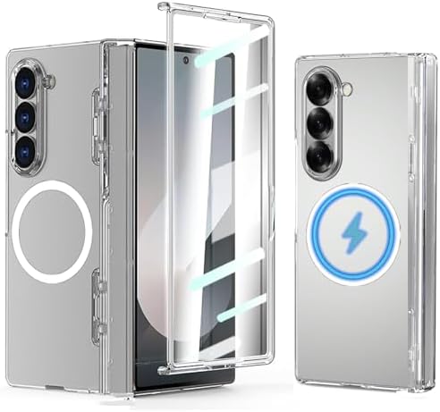 • MSOTES for Galaxy Z Fold 7 Case Compatible with MagSafe, Bulit-in 9H Screen Protector & Spring Hinge Protection Anti-Yellowing Strong Magnetic Slim Thin Phone Cover for Samsung Galaxy Z Fold7 (Clear)