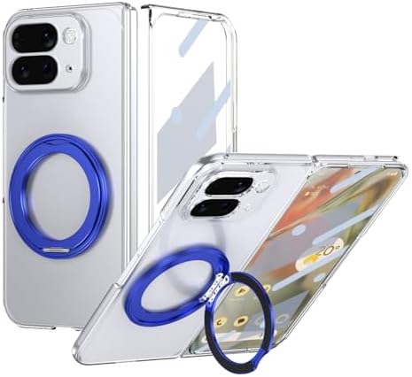 • Smartphone Flip Cases For Google Pixel 10 Pro Fold 2025 Case with Screen Protector, 360°Rotatable Ring Kickstand, Military Grade Shockproof Translucent Protective Case, Crystal Clear(Blue)