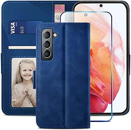 • YATWIN Compatible with Samsung Galaxy S22 Case, Flip Wallet Leather Case with Screen Protector and Card Slot Kickstand Phone Cases Cover for Samsung S22 – Blue