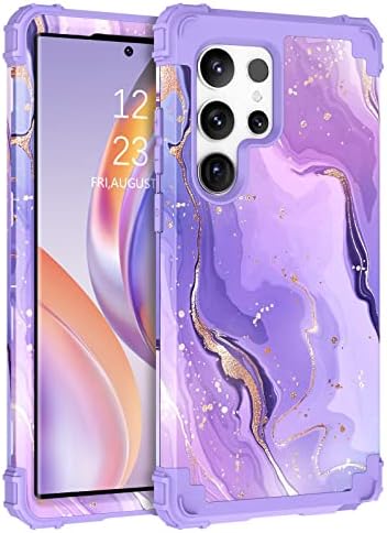 • BENTOBEN for Samsung Galaxy S23 Ultra Case, Marble Pattern Samsung S23 Ultra Case 3 in 1 Full Body Protective Soft Silicone + Hard PC Rugged Heavy Duty Cover for Girls Women, Purple Marble