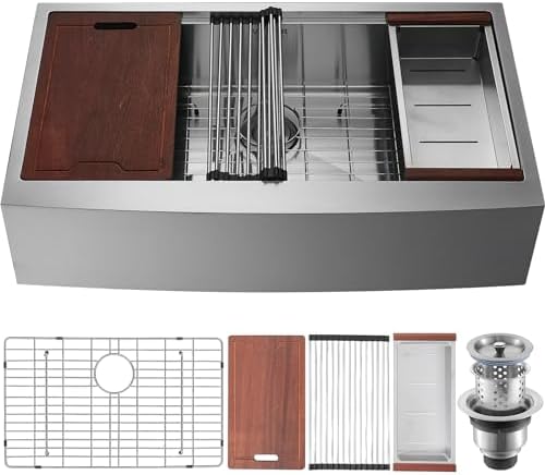 Price: (as of – Details) 33″ Large Dimension: Our farmhouse kitchen sink features a front apron design, offering enhanced aesthetics and more usable space. You can simultaneously wash, drain, and [More]