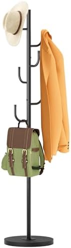 • MISSLO Heavy Duty Coat Rack Freestanding 4 Adjustable Size Coat Tree with Stable Wood Base Coat Hanger Stand with 6 Hooks Standing Clothes Tree for Bedroom, Black