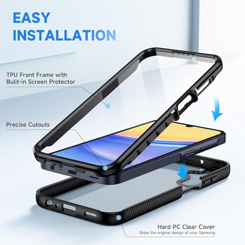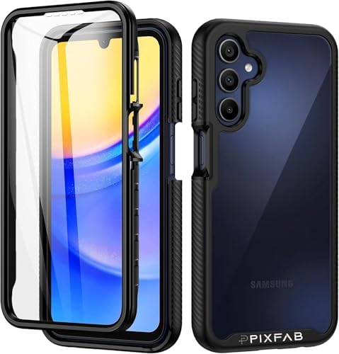 PIXFAB Case for Samsung Galaxy A16 Phone Case Cover, Front and Back Shockproof [Built-in Screen Protector], [Anti Scratch] Full Body Protective Clear Phone Cover with Soft Bumper Edges – Black