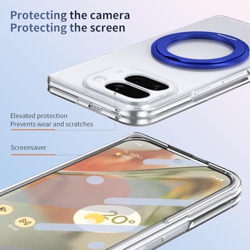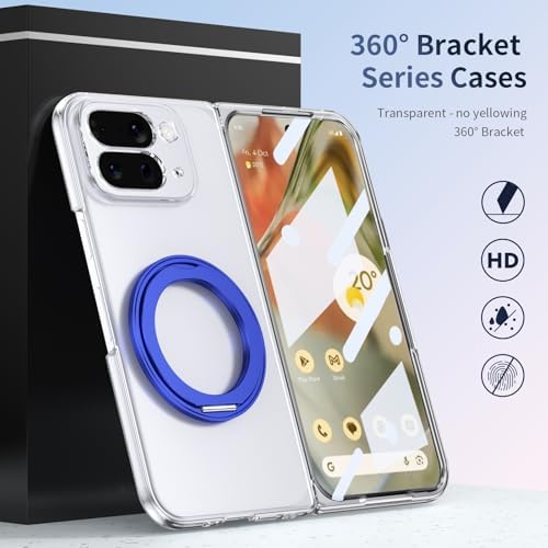 Smartphone Flip Cases For Google Pixel 10 Pro Fold 2025 Case with Screen Protector, 360°Rotatable Ring Kickstand, Military Grade Shockproof Translucent Protective Case, Crystal Clear(Blue)