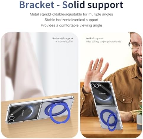 [Flexible Stand Adjustment]: Angle-adjustable stand Compatible with Samsung Galaxy Z Flip 7 phone case offers stabilizing support for hands-free viewing and on-the-go photography. The embedded stand smooth touch. The stand with enduring durability.