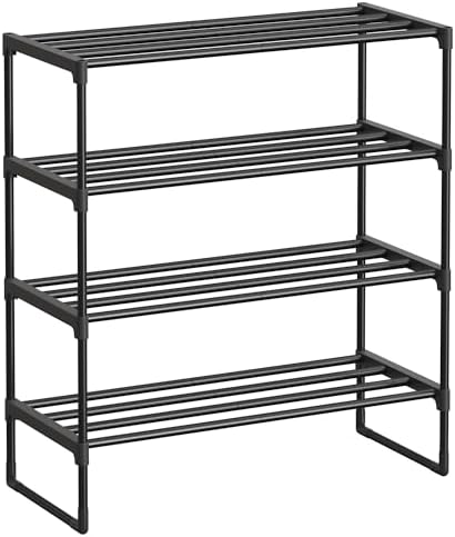 SONGMICS Shoe Rack, 4-Tier Shoe Organizer, Metal Storage Shelf, Upright or Upside Down, for 10-15 Pairs, Stackable, for Entryway, 11.8 x 26.8 x 29.5 Inches, Black ULSA204B01