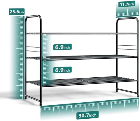 SUFAUY 3-Tier 33″ Wide Shoe Rack, Closet Metal Shoe Rack Organizer Heavy Duty, Stackable, Black