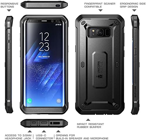 SUPCASE Unicorn Beetle Shield Full-body Rugged Holster Case with Built-in Screen Protector for Galaxy S8 (2017 Release), Black