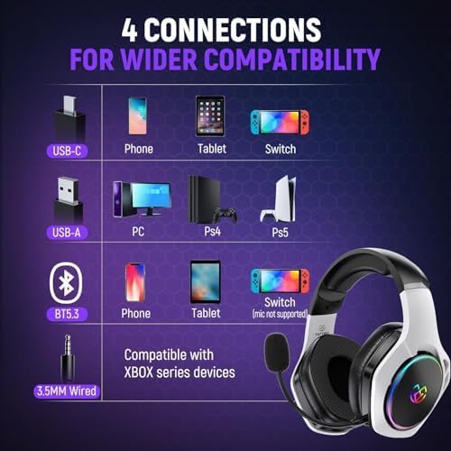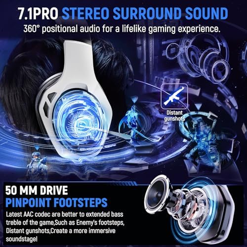 Tatybo 2.4Hz Wireless Gaming Headsets for Ps5 Ps4 PC, 40H+ Hrs & 7.1 Surround Sound with Noise Canceling Microphone Ps5 Headsets for Switch Phone, Bluetooth Gaming Headphone