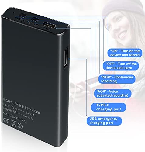 ? Timestamp: The timestamp function makes it easier for you to manage files, files are clearly marked. Emergency Charging: When your phone battery is low in case of emergency, this voice recorder can charge your phone