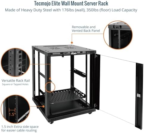 Professional Steel Construction: 15u server rack is made from premium cold-rolled steel with a powder-coated finish, the Tecmojo Elite Series cabinet supports up to 176 lbs wall-mounted and 350 lbs floor-mounted, providing a strong, reliable housing solution for IT and server equipment
