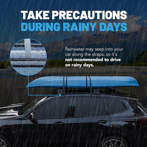 Do Not Use in Rain: Rainwater can travel along the straps and seep into your car. We strongly advise against using the rack on rainy days. If it starts to rain during your trip, be mindful of potential water inside your vehicle. After exposure to rain, clean the rack pads with fresh water and dry them thoroughly before storing.